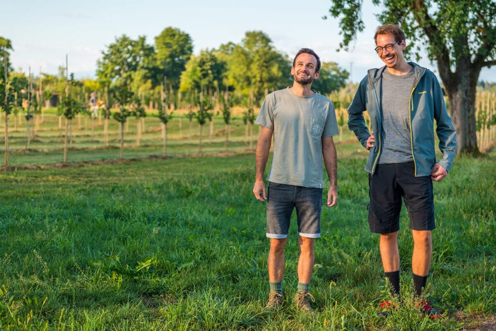 Haselnussbauer und Biologe Stefan Gerber aus Mettmenstetten ZH (links im Bild)