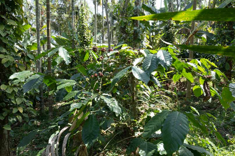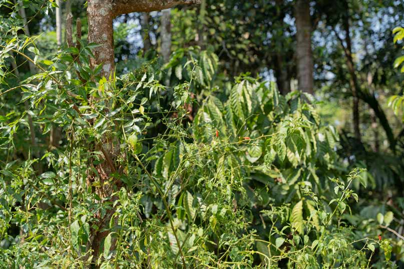 • Cultivation method: Cultivation in multi-stage agroforestry systems, without the use of pesticides. These spices are grown in the beautiful forest gardens of our partners in Kerala. Various spices, cashews, coconut palms, fruits and vegetables grow in the fields here. This type of agriculture protects biodiversity and is also climate-friendly: a lot of CO2 is stored in the soil and trees and there is almost no need for aids such as machines and fertilizers.