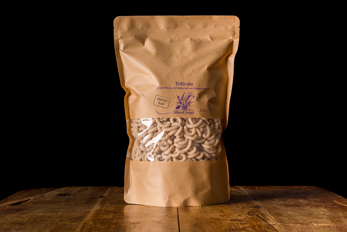 Diese Hörnli haben dank Triticale einen vollmundigen, charaktervollen Geschmack. Das Getreide stammt aus biologischem, regenerativem Anbau von SlowGrow. Bei dieser Sorte handelt es sich um eine Kreuzung zwischen Roggen und Weizen. Die 800g Grosspackung reicht für 6 bis 8 Portionen.