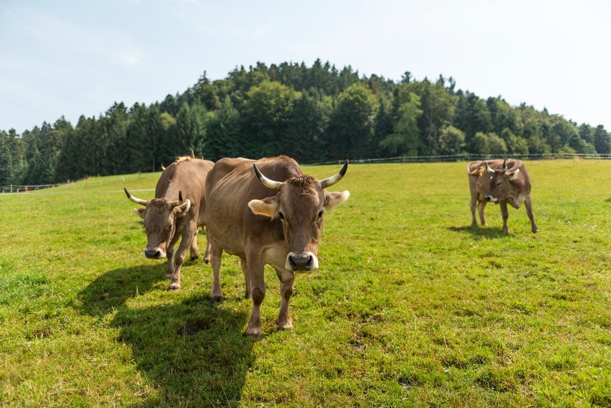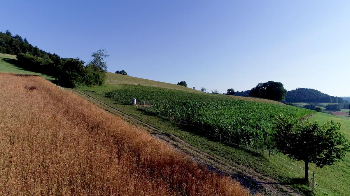 - Producers: Simone Ackermann betreibt auf 13 Hektaren eine sehr vielfältige Landwirtschaft: Auf den ausgedehnten Wiesen wachsen viele Hochstamm Obstbäume. Hier finden die Kühe genug Nahrung, um ohne zugekauftes Kraftfutter durchs Jahr zu kommen. Sie produzieren den Mist, welcher das Feld für den Mais-, Getreide- und Kartoffelanbau fruchtbar macht. Zwei Pferde und ein Traktor helfen beim Bestellen der Felder. Mit einem Teil der angebauten Kartoffeln werden die zwei Hofschweine gefüttert. Daneben gehören auch ein Hühnerstall und ein grosser Gemüsegarten zum Familienbetrieb. Der Quellenhof wird von Simone Ackermann sowie einem Lehrling nach biologisch-dynamischen Prinzipien bewirtschaftet. Dabei versuchen sie, die Kräfte der Natur zu nutzen und die Kreisläufe auf dem Hof aktiv zu gestalten.
