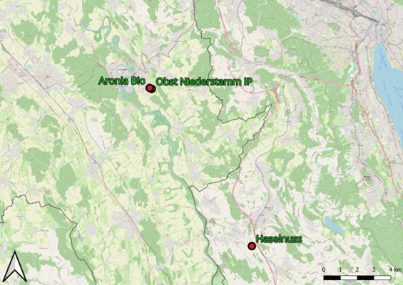 Die Anzahl an Wildbienen, Heuschrecken, Tagfaltern und Pflanzen in der Haselnussplantage in Mettemenstetten ZH wurden zwei Vergleichskulturen in der Nähe (Zufikon AG) gegenübergestellt: einer Bio-Aroniaplantage und einer IP-Niederstammobstplantage. Die verglichenen Flächen sind ähnlich hinsichtlich klimatischer und geografischer Bedingungen und Wuchshöhe der Kulturen. Unterschiede gibt es in der Grösse der Flächen sowie dem Alter: Die Haselnussplantage wurde 2021 angelegt, die Vergleichsflächen sind deutlich älter.