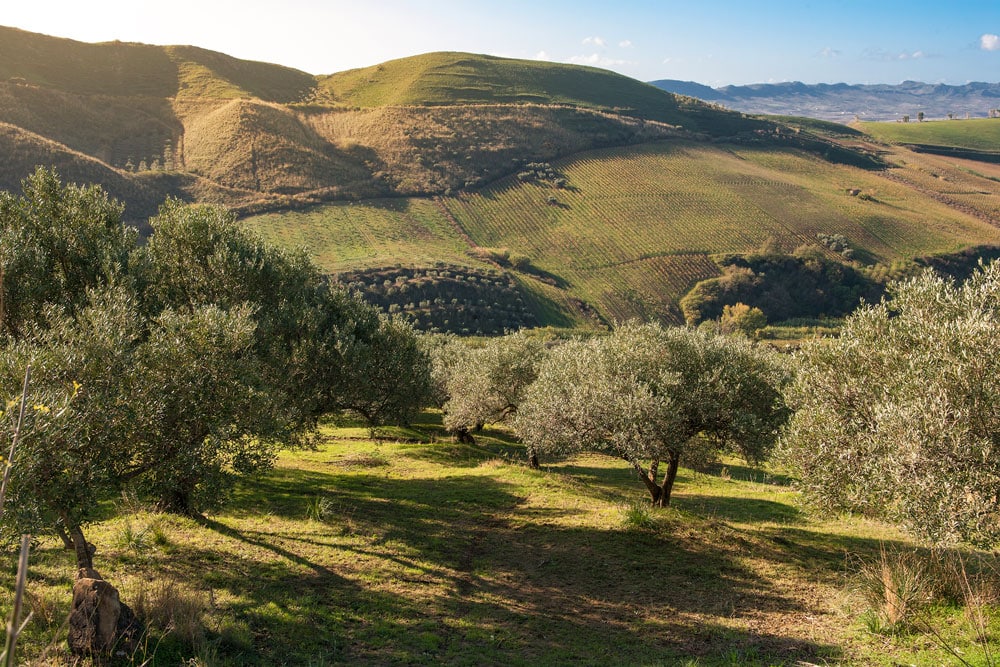 - Anbaumethode: Biologische Landwirtschaft. Das Öl wird aus drei lokalen Olivensorten gepresst: «Cerasuola» (70%), «Nocellara del Belice» (20%) und «Biancolilla» (10%). Geerntet wird jeweils ab Oktober bis Ende November tagsüber von Hand. Die alten Olivenbäume werden zusammen mit Zitrusfrüchten biologisch angebaut. Für die Ernte 2024 mussten wir die Preise nochmals anpassen, da die Erntemenge im Vergleich zum Vorjahr um ca. 20 Prozent zurückging. Zum einen konnten weniger und kleinere Oliven geerntet werden, dies hat zwei Gründe: Im April war es windig und kalt – viele Blüten haben nicht überlebt. Anschliessend folgte ein sehr trockener und heisser Sommer, die Oliven sind darum nicht gut gewachsen und fielen viel kleiner aus als gewohnt. Zudem war aufgrund der fehlenden Niederschläge im Winter und Frühling eine notfallmässige Bewässerung mit gesammeltem Regenwasser unmöglich.