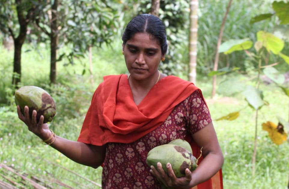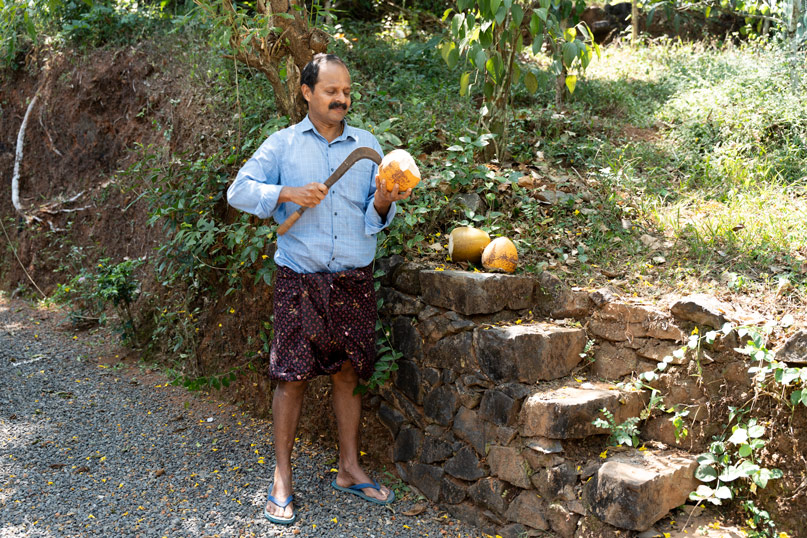- Produzent*innen: Die kleinen Bauernhöfe der Mitglieder der «Fair Trade Alliance Kerala» sind im Durchschnitt gerade Mal eine Hektare gross. Die Bäuer*innen bauen eine grosse Vielfalt an Produkten für den Export, für die lokalen Dorfmärkte, aber auch für sich selbst an. Viele haben ein Zusatzeinkommen, weil Familienangehörige in der Stadt oder gar im Ausland arbeiten und die Bauernfamilien unterstützen. Verarbeitet werden die Kokosnüsse von Healthy and Smart Agro Products, wobei die Rückverfolgbarkeit der Kokosnüsse gewährleistet ist.