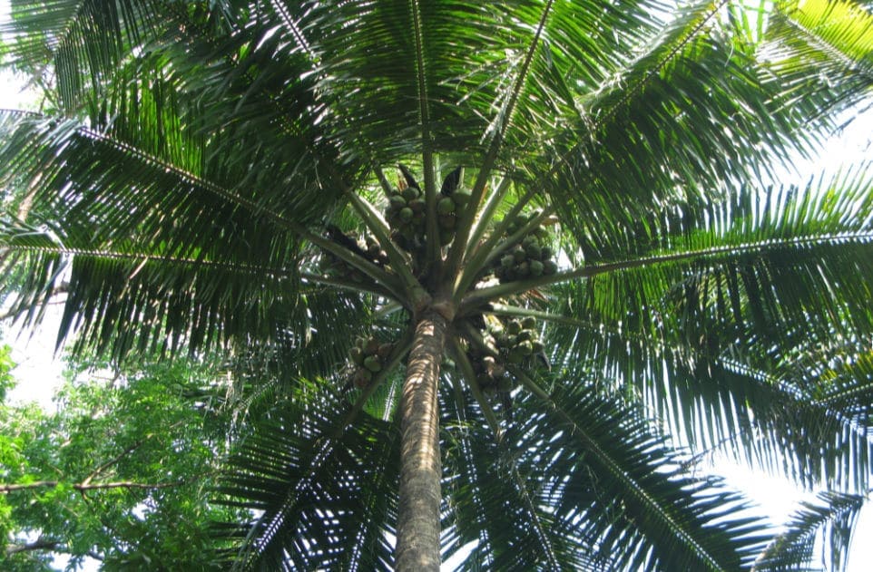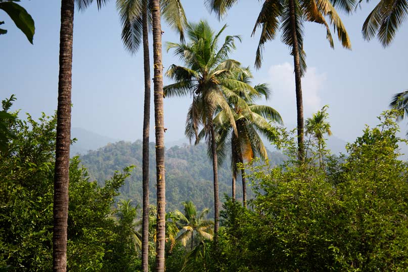 - Anbaumethode: Anbau in mehrstufigen Agroforstsystemen, ohne den Einsatz von Pestiziden. Die Kokosnüsse wachsen in den wunderschönen Waldgärten unserer Partner*innen in Kerala. Neben Kokospalmen wachsen auf ihren Feldern auch verschiedenen Gewürze, Cashews, Kakao, Kaffee, Früchte und Gemüse. Diese Art der Landwirtschaft schützt die Biodiversität und ist ausserdem auch klimafreundlich: Im Boden und in den Bäumen wird viel CO2 gespeichert und auf Hilfsmittel wie Maschinen und Dünger kann fast vollständig verzichtet werden.