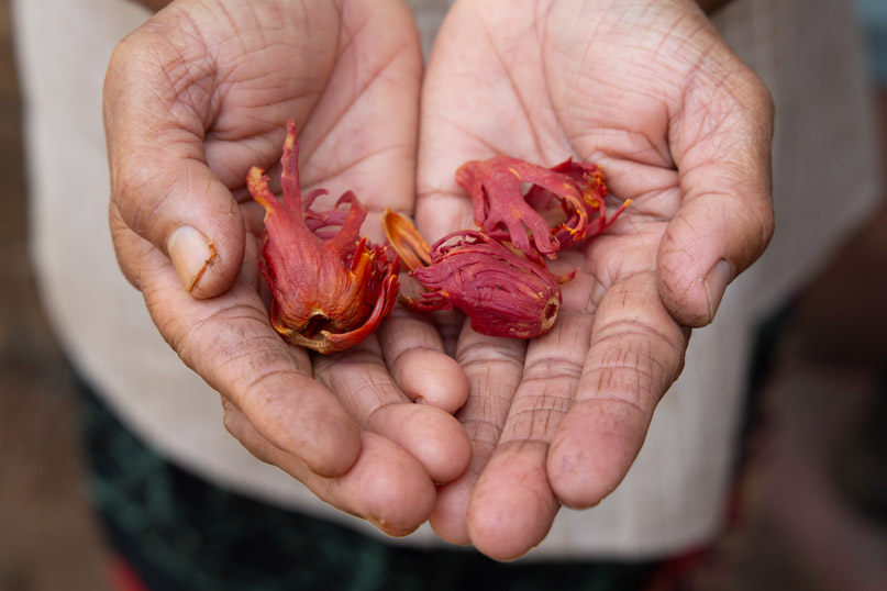 Die Produzent*innen erhalten USD 28 pro Kilogramm Muskatblüten. Wir bezahlen USD 80 pro Kilogramm Muskatblüten.
