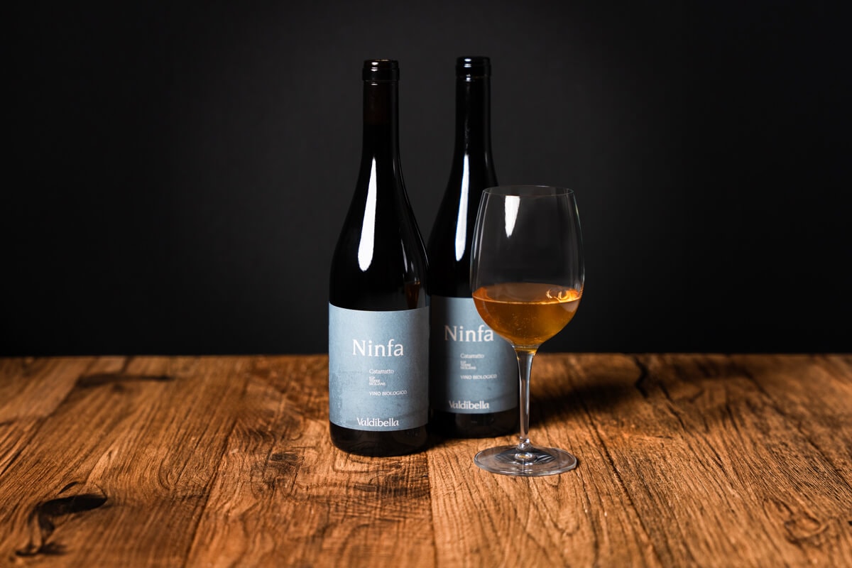- Qualitätsmerkmale: Spontangärung. Alkoholgehalt: 12%. Der Naturwein «Ninfa» ist vegan. Spontan fermentiert und ganz ohne Sulfite gekeltert, ist er ein kompromissloser Naturwein. Weil er ziemlich lang mit der Maische vergoren wurde, spürt man feine Tannine im Abgang. Anfangs September werden die «Catarratto» Trauben von Hand geerntet. Nach dem Pressen wird der Wein mit im Rebberg und Keller natürlich vorkommenden Hefenpilzen vergoren und 10 bis 12 Tage an der Maische gelassen. Diese sogenannte «Maischegärung» ist der Hauptunterschied in der Herstellung von Orange Wine und Weisswein. Im Gegensatz zu konventionellen Weinen werden für den «Ninfa» keinerlei Chemikalien verwendet. Auch das in Bio-Weinen zugelassene Sulfit wird ganz weggelassen.
