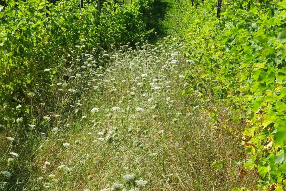- Anbaumethode: Biologische Landwirtschaft. Die Trauben werden ganz ohne chemische Hilfsmittel angebaut und auch auf das im Bio-Anbau zugelassene kupferbasierte Fungizid wird komplett verzichtet. Mit viel Handarbeit und minimalem Einsatz von grossen Maschinen werden die Rebberge sorgfältig gepflegt. So bleiben die Böden schön locker und eine unglaubliche Biodiversität entsteht in den Rebbergen, wo Dutzende von Rebsorten und sogar Obstbäume ihren Platz finden.