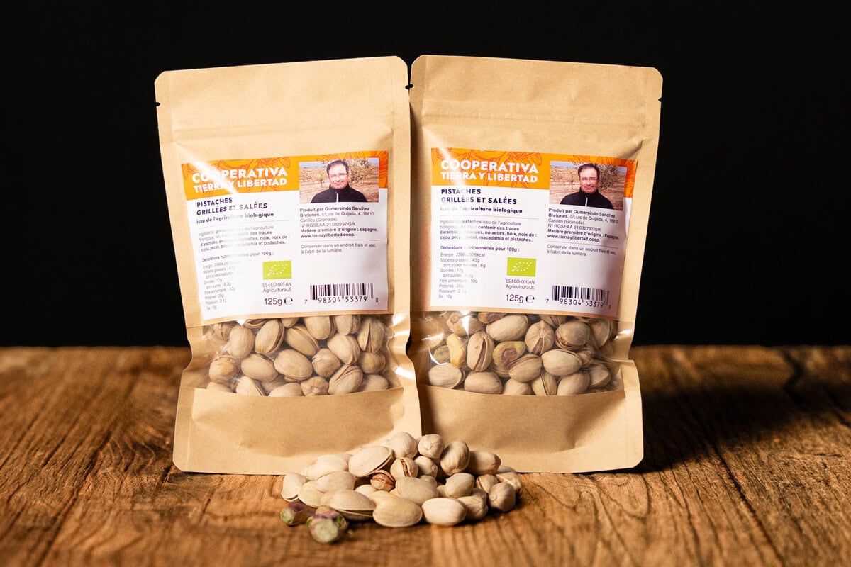 - Produzent*innen: Gumersindo Sánchez und seine Familie haben ihren 12 Hektaren grossen Biohof in der Provinz Granada 2014 auf biologische Landwirtschaft umgestellt. Seither testen sie viele innovative Produktionsmethoden. Als einer der ersten hat er die Pistazienkultur in die Region gebracht: Es ist eine von wenigen Kulturen, die mit dem rauen Klima und den salzigen Böden des Altiplano bei Granada zurechtkommt. Damit ist die Pistazie eine willkommene Alternative zu Oliven und Mandeln, um mehr Wertschöpfung in die Region zu bringen. Obwohl der Betrieb noch im Aufbau ist, interessieren sich bereits einige Nachbarn für die Umstellung auf ökologische Landwirtschaft. Gumersindo unterstützt sie gerne dabei. Er ist Mitglied von Tierra y Libertad, unserer Partnerkooperative in Andalusien.