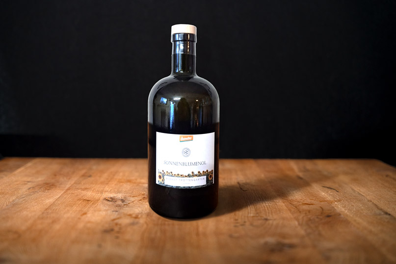 - Anbaumethode: Biologischer Anbau. Auf dem Biohof Trottengarten werden «High Oleic» Sonnenblumen angebaut, weil das Angebot an Ölen, welche für die heisse Küche eingesetzt werden können, noch immer begrenzt ist. Die Kerne wurden von der Familie Tappolet in Wilchingen (SH) zu einem hochwertigen Öl gepresst.