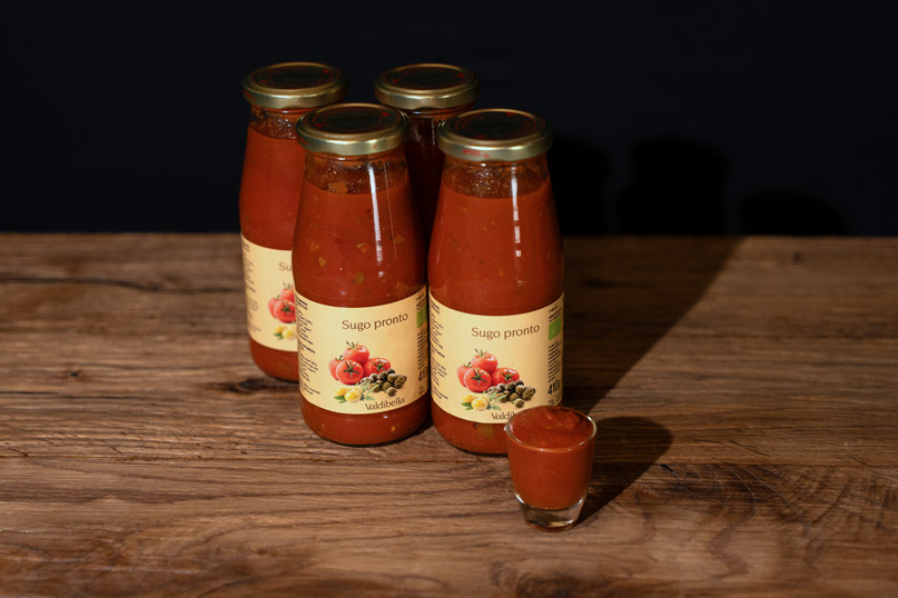 - Geschmack: Genuss dank hochwertiger Zutaten – auch beim Sugo pronto der Kooperative Valdibella gilt dieser Grundsatz. Die Tomaten haben einen besonders intensiven Geschmack, weil sie biologisch und im Normalfall ohne Bewässerung im sogenannten «Siccagno»-Verfahren angebaut werden. Die Kombination mit Oliven, Kapern, Olivenöl und weiteren Kräutern verleihen dem Sugo eine würzige, leicht scharfe Note und garantieren vielfältige Geschmackserlebnisse.